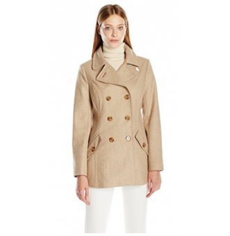 此款采用了经典的双排钮扣Peacoat式设计,这设计是源于军队的礼服。所以经久耐看还修身,永不过时,女性穿着更有别样风范。材质方面:57%羊毛,33%涤纶,其他10%纤维,只能干洗,腰部带有松紧收缩设计,修身裁剪,英姿飒飒。