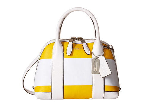 COACH 彩色贝壳包Bleecker Striped Coated Convertible Mini Preston,精选小牛皮制作,黄白色搭配非常抢眼,经典的贝壳包造型,漂亮而实用,尺寸约为:尺寸约为22.86x19*11cm.